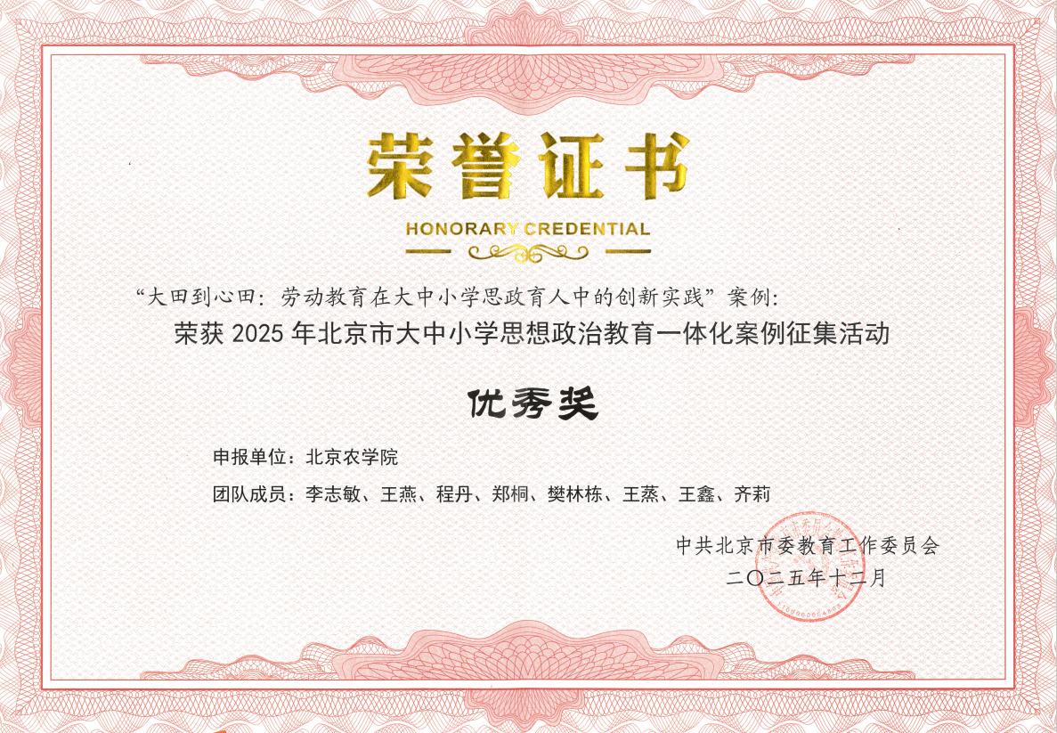 根据《关于2025年北京市大中小学思想政治教育一体化案例征集活动入选结果的公告》,北京市委教育工委共...