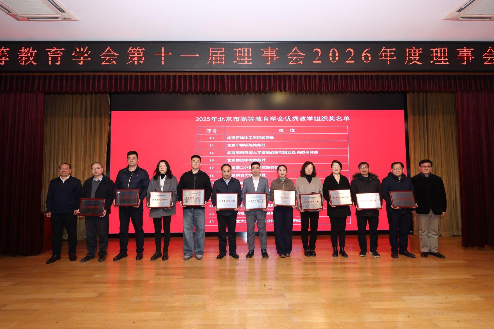 2026年3月21日,北京市高等教育学会2026年度理事会暨工作会议在北京联合大学召开。会上公布了2025年度北京市高等教育学会优秀教学组织奖评选结果,北京农学院教务处荣获“优秀教学组织奖”,教务处处长颜亭玉参加会议。