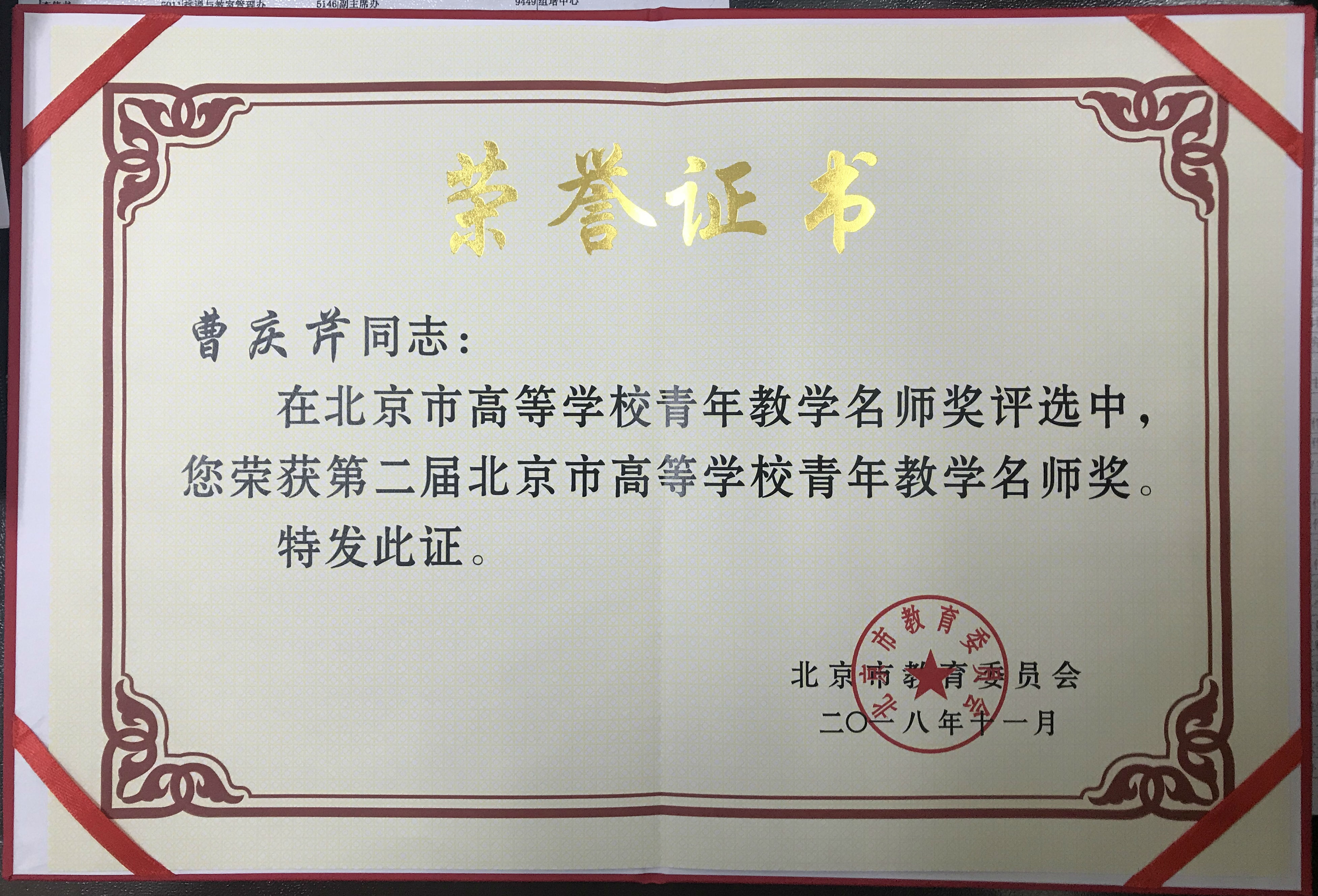 目前我校共有4位教师获北京市“高创教学名师”,12位教师获北京市“教学名师”,2位教师获北京市“青年教学名师”称号。