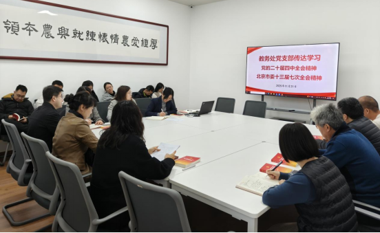 为深入领会党的二十届四中全会与北京市委十三届七次全会精神,切实将中央部署与首都要求转化为教育教学管理工作的具体实践,11月21日,教务处党支部召开专题会议,深入学习贯彻两次全会精神。校党委常委、副院长武艳出席会议,教务处处长颜亭玉主持会议。