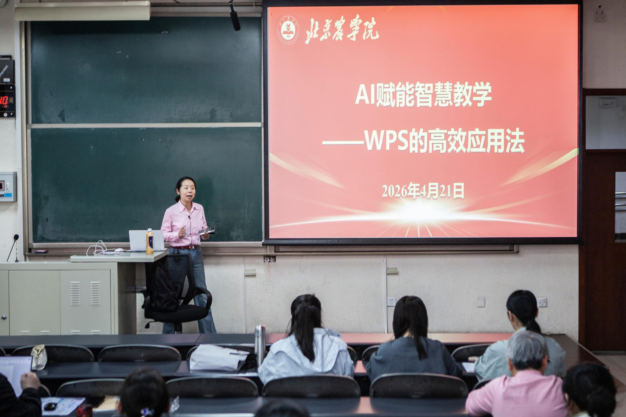 为深入推进人工智能与教育教学融合,助力教师高效运用数字化工具赋能课堂教学,4月21日下午,学校教务处、党委教师工作部、网络与信息中心联合举办金山WPS AI赋能智慧教学专题培训。教务处副处长韩莹琰主持,网络与信息中心主任史伟出席,各教学单位骨干教师、教学管理人员及对WPS AI教学应用感兴趣的教师参加。